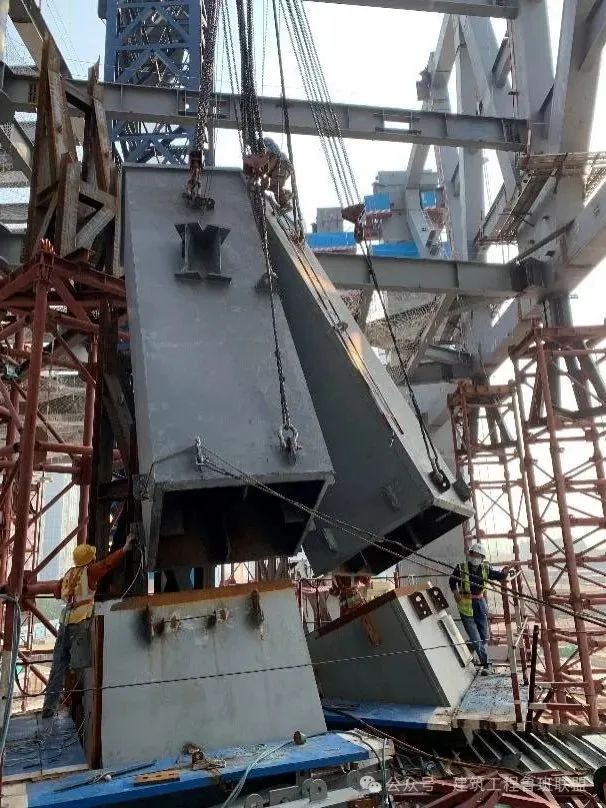 1、發(fā)明了“埋入式型鋼巨柱腳”和“埋入式柱腳安裝可調(diào)節(jié)裝置”,形成了全鋼內(nèi)筒斜柱轉換節(jié)點制作和安裝技術。